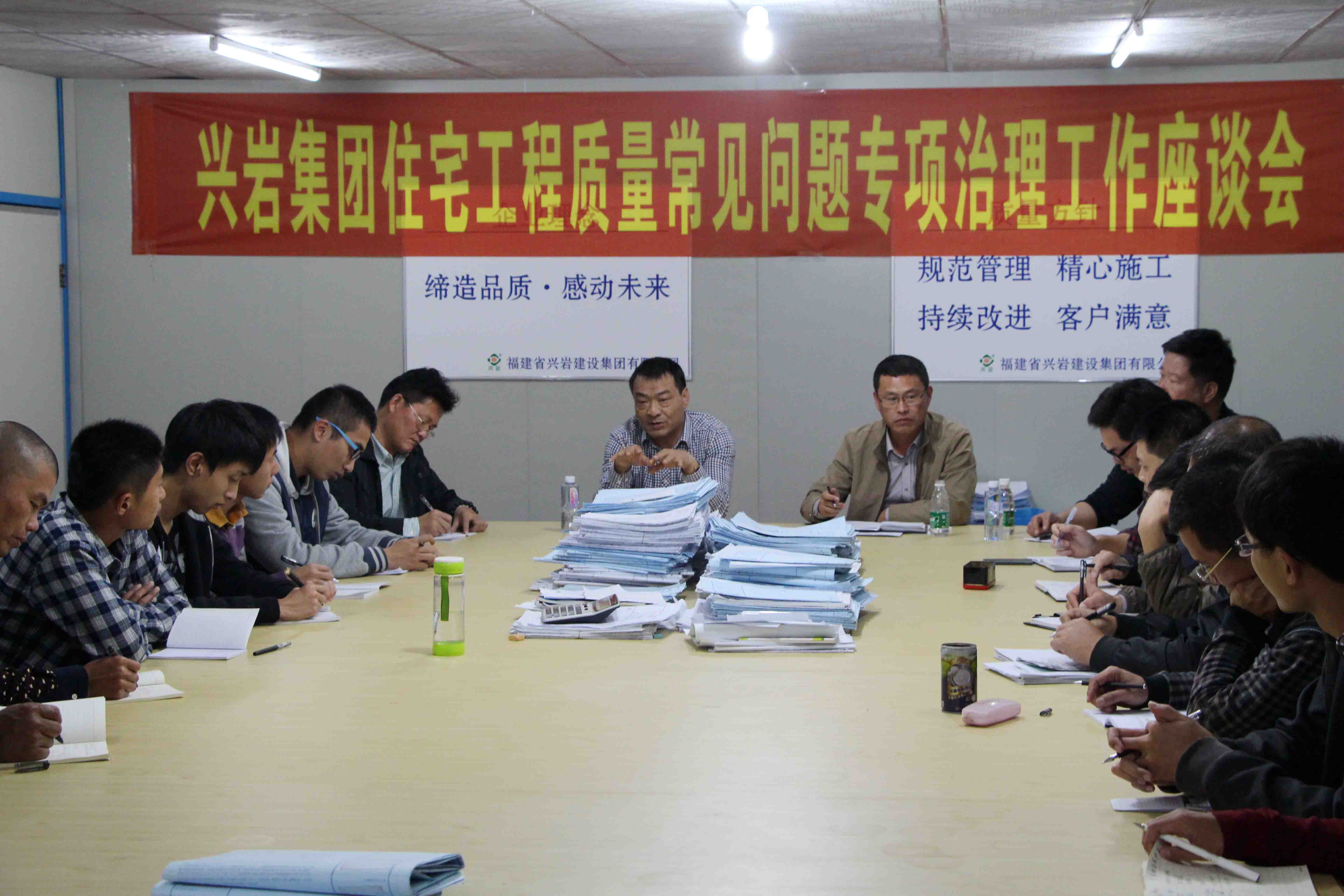為鞏固我公司工程質(zhì)量管理的成果,促進(jìn)我公司工程質(zhì)量管理水平進(jìn)一步提高,按照住房城鄉(xiāng)建設(shè)部《住宅工程質(zhì)量常見(jiàn)問(wèn)題專項(xiàng)治理工作方案》要求及《福建省住房和城鄉(xiāng)建設(shè)廳關(guān)于印發(fā)〈住宅工程質(zhì)量常見(jiàn)問(wèn)題專項(xiàng)治理工作方案〉的通知》(閩建建函〔2013〕233號(hào))精神,我公司于2014年12月2日在金里花園項(xiàng)目部舉行了住宅工程常見(jiàn)質(zhì)量問(wèn)題專項(xiàng)治理工作座談會(huì)。