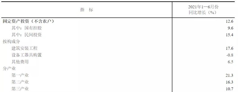 1-6月份,全國固定資產(chǎn)投資(不含農(nóng)戶)255900億元,同比增長12.6%;比2019年1-6月份增長9.1%,兩年平均增長4.4%。其中,民間固定資產(chǎn)投資147957億元,同比增長15.4%。從環(huán)比看,6月份固定資產(chǎn)投資(不含農(nóng)戶)增長0.35%。