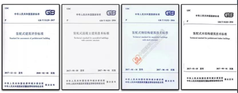 在國家引導(dǎo)和大力扶持下,裝配式建筑正朝著規(guī)范化方向穩(wěn)步發(fā)展,現(xiàn)行標(biāo)準(zhǔn)不斷完善。目前,我國在裝配式建筑領(lǐng)域遵循的國家標(biāo)準(zhǔn)主要有一本評價標(biāo)準(zhǔn)、三本技術(shù)標(biāo)準(zhǔn)。