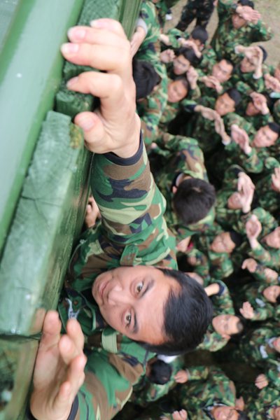 最為深刻的是“畢業(yè)墻”項(xiàng)目,在只能依靠眼神和手勢(shì)來完成交流的困境下,大家要全體攀越那面4.5米高的高墻。由于很小的一次失誤,最終大家經(jīng)歷了功虧一簣、全軍覆沒的慘烈失敗。當(dāng)隊(duì)長(zhǎng)為承擔(dān)錯(cuò)誤必須接受嚴(yán)厲酷罰時(shí),很多員工眼眶都濕潤(rùn)了。身陷絕境的時(shí)候,組織如何自救?這需要集體的智慧、周密的計(jì)劃以及強(qiáng)有力的領(lǐng)導(dǎo)執(zhí)行……大家深刻反思到了“自我管理,團(tuán)隊(duì)無間,軍令如山!”的精髓,以及作為團(tuán)隊(duì)一員所要承擔(dān)的重大責(zé)任。值得欣慰的是,最終化失敗為教訓(xùn),大家齊心協(xié)力,奉獻(xiàn)擔(dān)當(dāng),嚴(yán)守紀(jì)律,勇敢攀越,全體100來號(hào)員工順利逾越了那堵“高不可攀”的墻,一種成功的喜悅感和驕傲感油然而生!更感受到了團(tuán)隊(duì)力量的強(qiáng)大:“人心齊泰山移”!