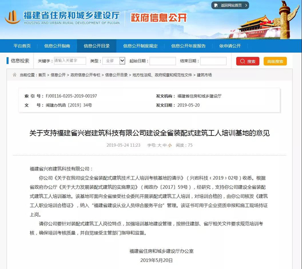 閩建辦筑函原文 關(guān)于支持福建省興巖建筑科技有限公司建設(shè)全省裝配式建筑工人培訓(xùn)基地的意見 你公司《關(guān)于在我司設(shè)立全省裝配式建筑技術(shù)工人培訓(xùn)考核基地的請示》(興巖科技﹝2019﹞02號)收悉。根據(jù)省政府辦公廳《關(guān)于大力發(fā)展裝配式建筑的實(shí)施意見》(閩政辦〔2017〕59號),經(jīng)研究,支持你公司建設(shè)全省裝配式建筑工人培訓(xùn)基地。該基地可面向全省接受社會委托開展裝配式建筑工人培訓(xùn),對培訓(xùn)合格的,由你公司核發(fā)《建筑工人職業(yè)培訓(xùn)合格證》,納入“福建省建設(shè)從業(yè)人員綜合服務(wù)平臺”管理。該證書可用于企業(yè)資質(zhì)申報(bào)和施工現(xiàn)場持證上崗。 請你公司要針對裝配式建筑工人崗位特點(diǎn),加強(qiáng)培訓(xùn)基地建設(shè)管理,按照住建部、省廳相關(guān)文件要求規(guī)范培訓(xùn)考核,確保培訓(xùn)考核質(zhì)量,并自覺接受主管部門指導(dǎo)和監(jiān)督。 福建省住房和城鄉(xiāng)建設(shè)廳辦公室 2019年5月20日 喜報(bào)!05月20日福建省住房和城鄉(xiāng)建設(shè)廳發(fā)布題為“《關(guān)于支持福建省興巖建筑科技有限公司建設(shè)全省裝配式建筑工人培訓(xùn)基地的意見》 ”的閩建辦筑函〔2019〕34號。這表示我集團(tuán)下屬福建省興巖建筑科技有限公司裝配式建筑工人培訓(xùn)基地,可面向全省接受社會委托,開展裝配式建筑工人培訓(xùn),并頒發(fā)有效的專業(yè)培訓(xùn)合格證書。 為適應(yīng)建筑產(chǎn)業(yè)現(xiàn)代化發(fā)展趨勢,響應(yīng)福建省住建廳做好裝配式建筑技術(shù)工人培訓(xùn)工作的指示,興巖科技不斷完善基礎(chǔ)設(shè)施,并設(shè)立了完善的培訓(xùn)管理制度。借鑒省內(nèi)、外的做法經(jīng)驗(yàn),采用“理論+實(shí)操+考核”相結(jié)合的培訓(xùn)方式,使參訓(xùn)人員對裝配式建筑的理論體系有系統(tǒng)了解的同時(shí),更加直觀的學(xué)習(xí)裝配整體式建筑從設(shè)計(jì)到施工及管理全過程,以確保學(xué)員最終能夠真正掌握裝配式建筑工種職業(yè)技能。 后續(xù)興巖科技擬在現(xiàn)有培訓(xùn)基地的基礎(chǔ)上,還將進(jìn)一步與高校合作成立“興巖建筑科技產(chǎn)業(yè)學(xué)院”。 裝配式建筑發(fā)展既要高質(zhì)量發(fā)展、綠色發(fā)展,也要安全發(fā)展,建設(shè)完成后興巖科技培訓(xùn)基地將不僅僅面向本企業(yè)和合作企業(yè)的裝配式建筑產(chǎn)業(yè)工人,在承接好漳州市裝配式建筑技術(shù)工人培訓(xùn)的同時(shí),也將努力為全省建筑業(yè)轉(zhuǎn)型升級和建筑產(chǎn)業(yè)化發(fā)展做出應(yīng)有貢獻(xiàn)。