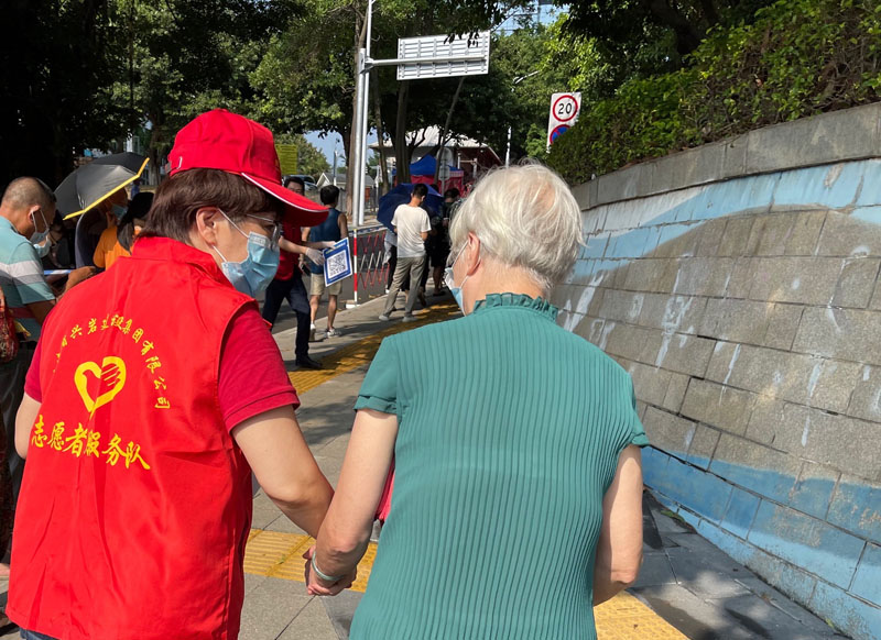 9月17日起,東渡項(xiàng)目部自啟動(dòng)全民核酸檢測以來,在公司領(lǐng)導(dǎo)石紅梅帶領(lǐng)下,公司人員及東渡項(xiàng)目部管理人員、志愿者身穿“紅馬甲”,早早來到東渡牛頭山社區(qū)檢測點(diǎn),積極協(xié)助相關(guān)部門做好秩序維持、登記碼查驗(yàn)等輔助工作;耐心地引導(dǎo)群眾自覺排隊(duì),保持距離,幫助老年群眾操作手機(jī),使得核酸檢測現(xiàn)場井然有序。同時(shí)為一線醫(yī)護(hù)工作者帶去了礦泉水、面包、方便面等物資,為抗疫逆行者們加油。