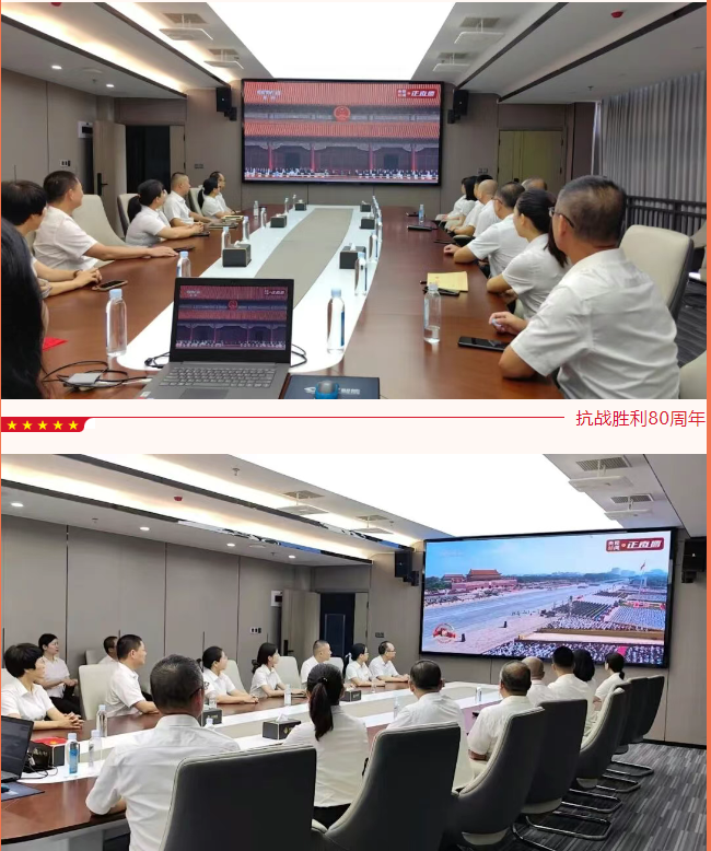 為弘揚偉大抗戰(zhàn)精神,銘記歷史,砥礪前行,2025年9月3日上午,興巖集團(tuán)員工集中收看紀(jì)念中國人民抗日戰(zhàn)爭暨世界反法西斯戰(zhàn)爭勝利80周年大會閱兵式的全程視頻直播,共同見證了這一展現(xiàn)國家威儀和軍隊現(xiàn)代化建設(shè)成果的歷史性時刻。
