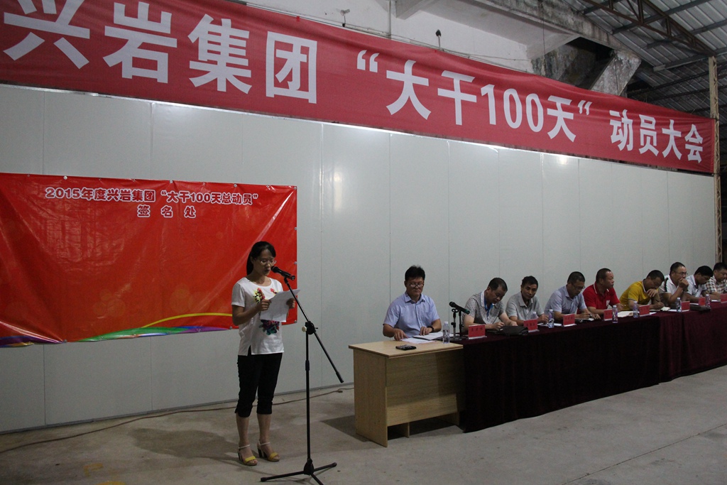 本次會議由集團行政副總袁君明主持,會議分兩項議程:首先,由集團各級管理人員和員工代表發(fā)言,圍繞今年以來本部門的運作情況向大會作匯報,并結(jié)合集團“大干100天”總動員的精神詳述本部門的工作計劃。其次,進行集團“大干100天”總動員簽名儀式。